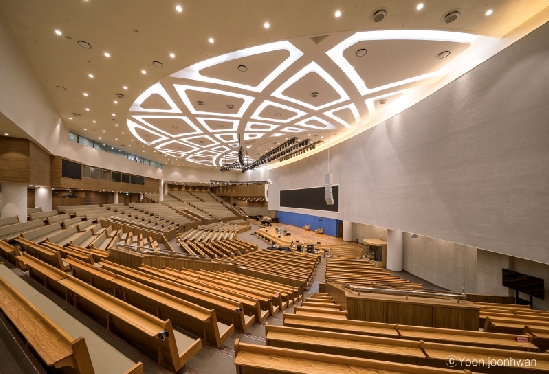 조성되기를 기대한다. 출항하는 거대한 선박과 같이 들린 듯 열린 정면은 흔한 첨탑 형상에 기독교 건축이 머물러 있지 않고, 역동하는 장소, 자연으로 열린 공간, 도시와 교류하는 복합 건축으로 자리매김 하려는 의지를 드러낸다.