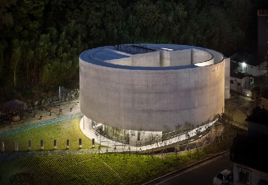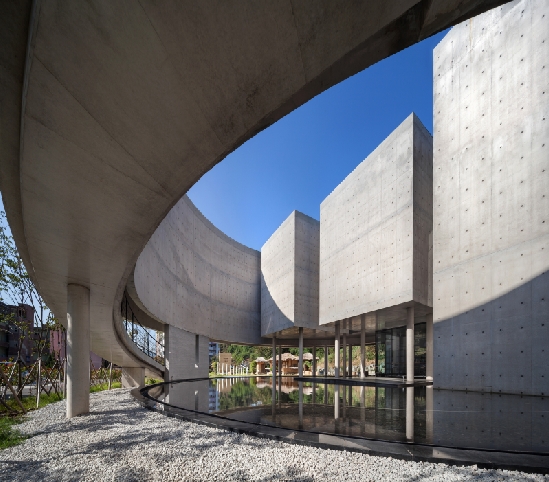 원형의 노출 콘크리트 실린더는 외부공간의 닫힌 조형으로써, 기념관의 상징성을 잘 드러낸다. 이 실린더는 위쪽의 하늘과 아래의 수공간을 향해 열려 있는 동시에, 시끄러운 도심으로부터 고요한 기념관의 둥근 내˙외부공간을 보호하려는 폐쇄성을 지닌다. 그리고, 기념관 방문의 시작점에서 조성되는 경사로 공간과 내부 콘크리트 복도는 외부 도시의 번잡함을 잊게 한다. 또한, 기념관을 내면적 고요로 전환시켜주는 완충적 건축 장치가 되며, 방문의 시간을 늘려 사색을 유도함으로써 그 기념성을 증대시키고자 하는 의도를 갖고 있다.